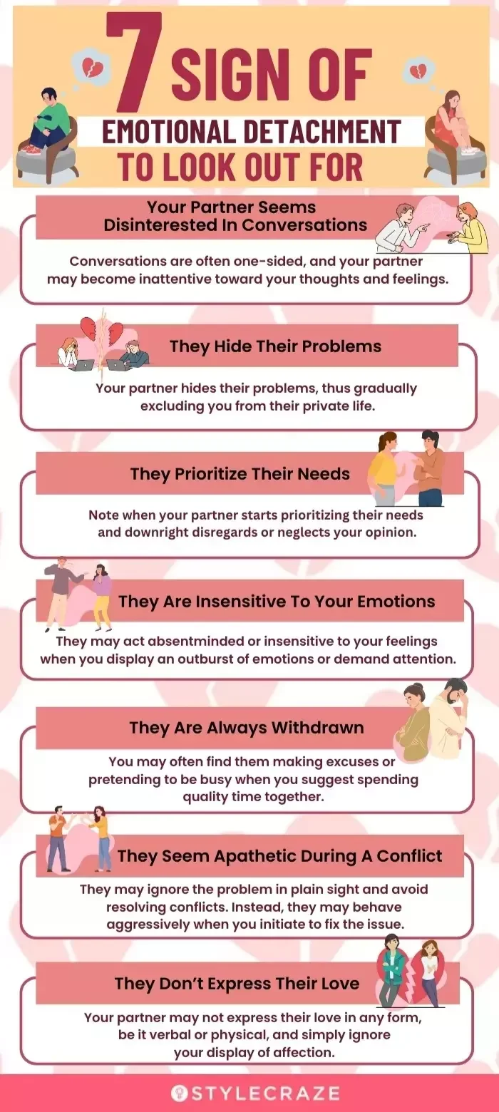 Emotional distance often manifests through avoidance. Your partner may sidestep difficult topics or respond with silence rather than engagement. This pattern tends to grow over time rather than appearing suddenly. Recognizing these behaviors can help in addressing the underlying issues before they widen the emotional gap.